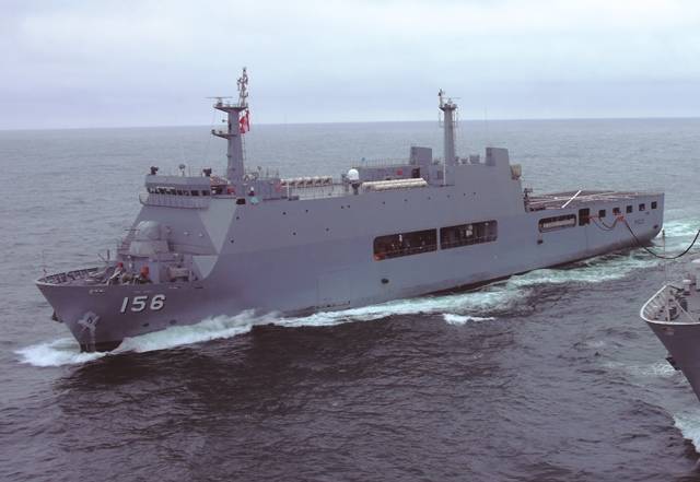 La tripulación nominal es 150 efectivos (14 oficiales y 112 especialistas) y 7 observadores. Es capaz de transportar a 400 Infantes de Marina. En lo que a armamento se refiere, monta a proa un Bofors 40/L70 de 40 mm. (un MK-V modificado y dotado de un nuevo magazine de proyectiles) diseñado por la Dirección de Alistamiento Naval (DIALI), que remplaza al instalado tras su entrada en servicio.