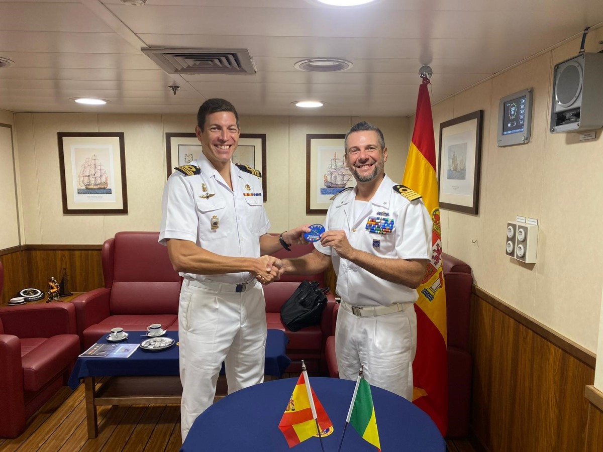 Saludo entre el Director de la Célula Permanente de EUROMARFOR y el Comandante del 'Meteoro'.