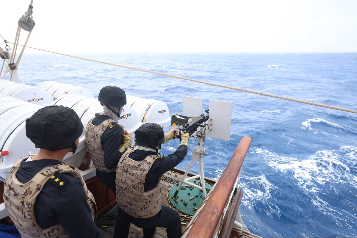 El buque escuela de la Armada española “Juan Sebastián de Elcano” acaba de realizar un ejercicio de autodefensa con el armamento que lleva a bordo, con el fin de entrenar a sus alumnos y dotación contra amenazas cercanas, como podrían ser lanchas rápidas, tripuladas o manejadas de forma remota.