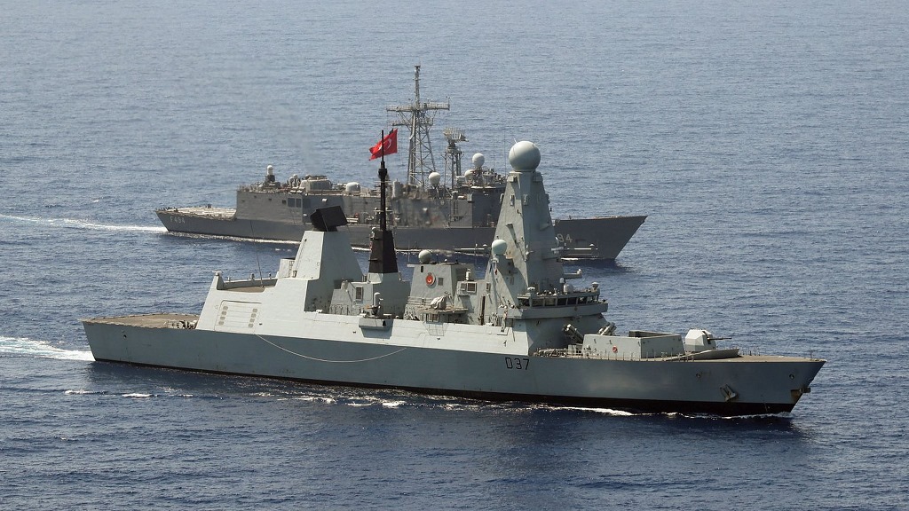 El destructor HMS “Duncan” navegando en formación con la fragata de la TDK “Gokceada”. (foto SNMG2)