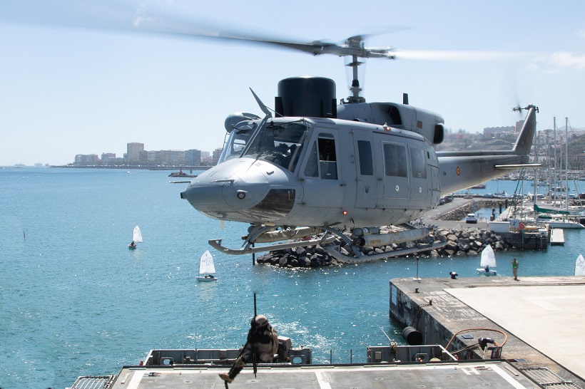La Armada utilizó, entre otros medios, para el “asalto” uno de sus helicópteros AB-212 de la tercera Escuadrilla. (Foto Antonio Rodríguez Santana)
