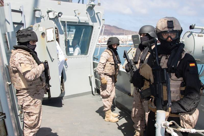 Los infantes de Marina del EOS se hicieron enseguida con el control del navío, ocupando rápidamente sus puntos sensibles, como el puente de mando y la sala de máquinas, contribuyendo sus perros a neutralizar a algunos sospechosos. Con esta acción, se facilitó la posterior intervención del Trozo de Visita y Registro, que llegó a bordo de una lancha semirrigida, que simulaba venir del BAM “Relámpago”.