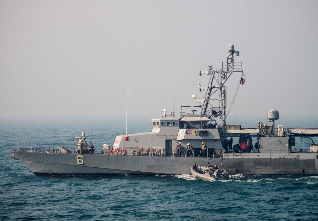 El USS Sirocco (PC 6) durante un ejercicio conjunto con la marina de Iraq en 2016. Se aprecia la torre MK-38 a proa y los contenedores para los misiles Griffin (US Navy)