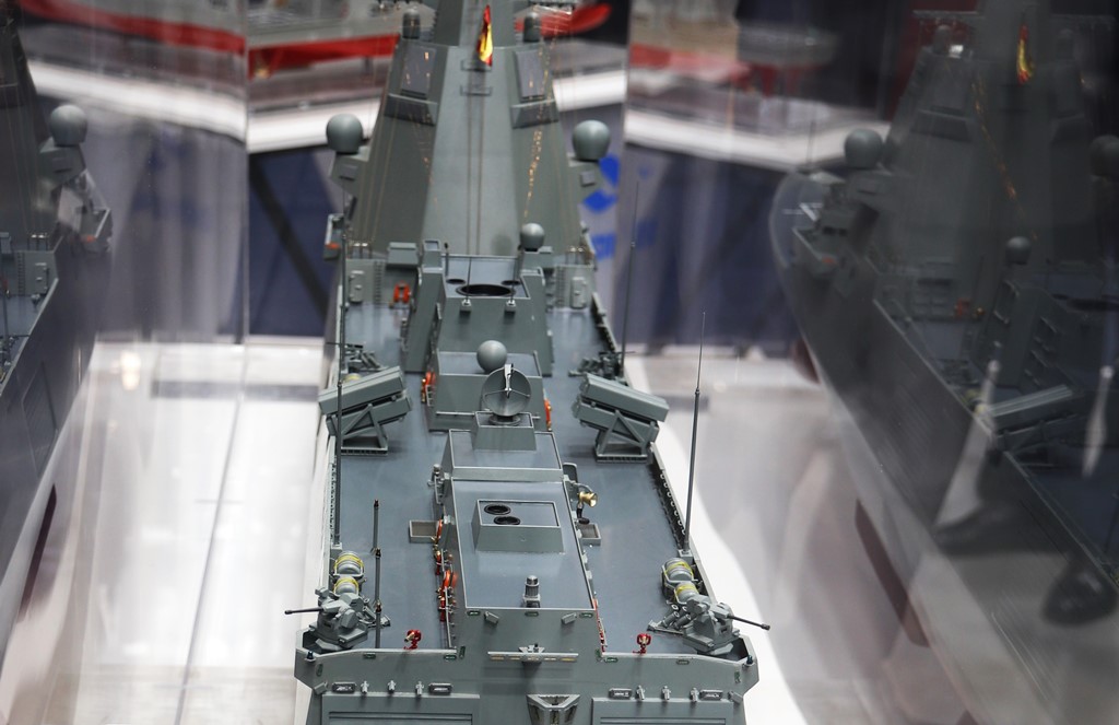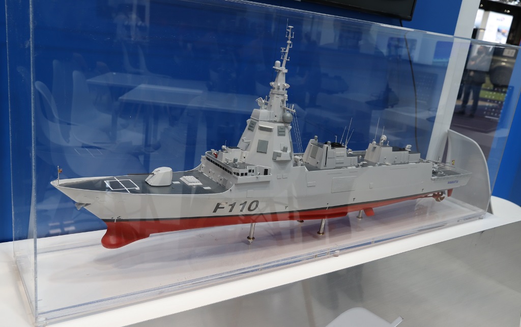 Maqueta de la F-110 presentada por Navantia en FEINDEF 2021. (foto Julio Maíz/defensa.com)