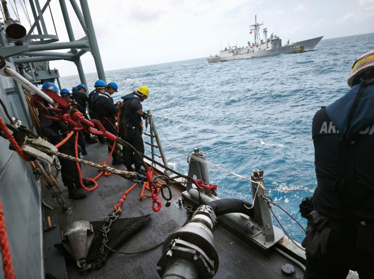 En concreto, se ha realizado un repostaje de combustible (Fueling At Sea/FAS) a la ‘Santa María’ por la popa del buque petrolero ‘TCG UTGM Arif Ekmekci’, una maniobra poco habitual ya que Turquía es la única nación que tiene actualmente capacidad para repostaje en la mar en el océano Índico.