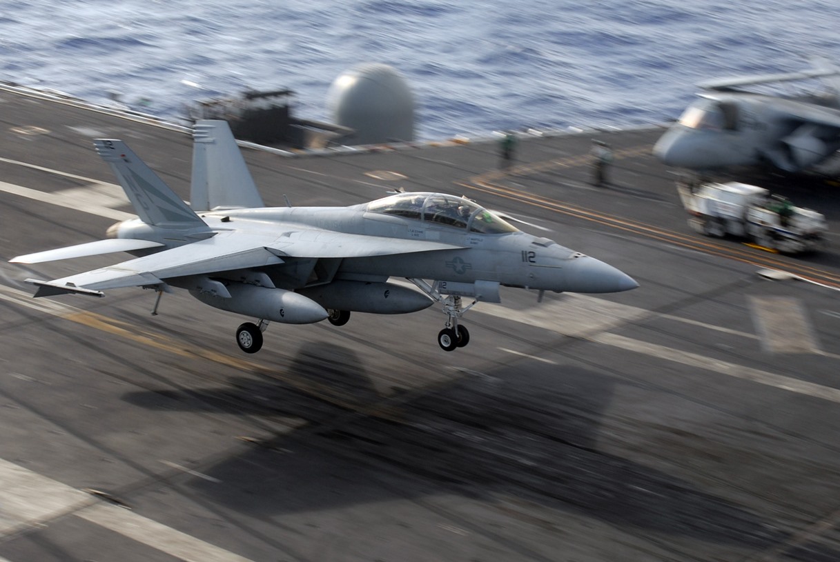 Un F/A-18F “Súper Hornet” aterrizando en el portaaviones USS “John C. Stennis”. (foto US Navy)