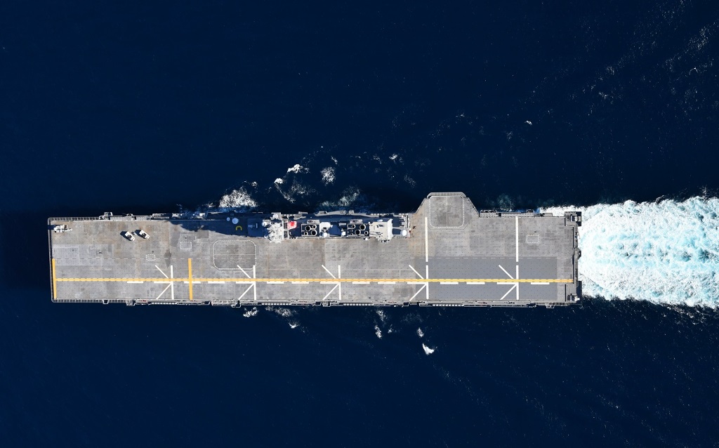 El “Kaga” a vista de pájaro, donde se aprecia su reformada cubierta de vuelo. (foto JMSDF)