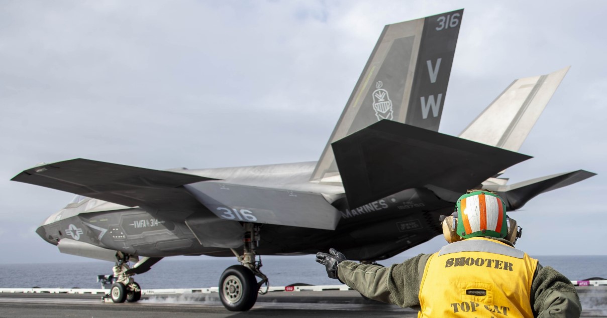 Uno de los F-35C del VMFA-314 se dispone a ser lanzado desde el USS “Abraham Lincoln”. (foto: US Navy)