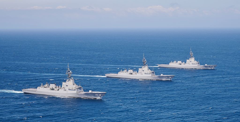 Los tres destructores clase Hobart juntos en 2020 (Royal Australian Navy)