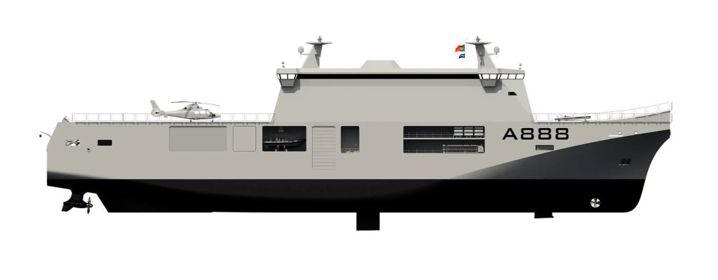 Estará destinado principalmente a tareas auxiliares, investigación oceanográfica o hidrográfica y misiones científicas, de ahí la integración de plataformas no tripuladas aunque también de búsqueda y rescate y seguridad marítima. Aunque en las infografías mostradas por Damen se muestra con un helicóptero tipo Dauphin en cubierta, no parece contar con hangares para ellos. A la altura de la zona multimisión se aprecian en los costados portalones y pescantes para desplegar lo que parecen ser lanchas de desembarco u otras menores auxiliares. (José Mª Navarro García)