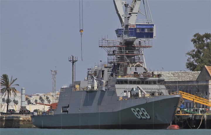 foto: La futura corbeta “Al Jubail” de la Real Marina de Arabia Saudita en construcción en el muelle de Navantia de San Fernando, basada en el OPV “Avante” 2200 (foto Julio Maíz).
