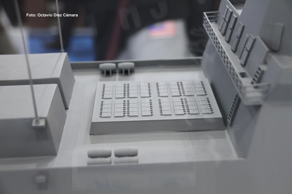 Estas plataformas incorporan dos módulos VLS -éste es el central- para el lanzamiento vertical de armas con nada menos que 96 celdas en total. (Octavio Díez Cámara)