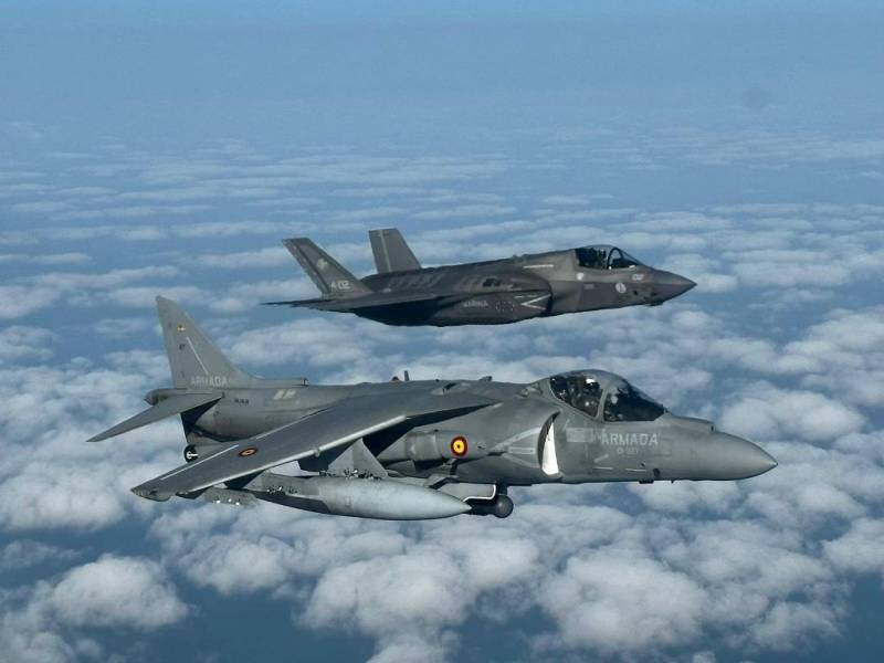 Desde el Mediterráneo nos llega la imagen de un AV-8B Harrier II de la Armada española volando en formación con un F-35B de la Marine Militare italiana, el avión de combate embarcado que ambicionan los marinos españoles.