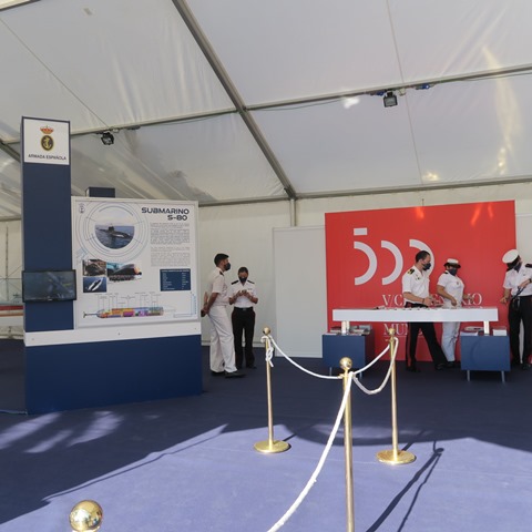 La Armada, como en todas las ediciones anteriores, participo de manera muy activa. La presencia del Almirante Jefe de Estado Mayor de la Armada, en la inauguración del stand de la Armada demuestra el interés de nuestra Marina por el evento. Además del stand, su participación se complementó mediante la presencia la fragata Numancia (F-83) de la clase Santa María, junto a los buques de medidas contra minas Sella (M-32) y Tambre (M-33). El Sella, realizo solamente la visita de un día, mientras que el Tambre efectuó los tradicionales bautismos de mar a bordo de los buques de la Marina; siempre con las indispensables medidas de seguridad demandadas por las autoridades sanitarias para este tipo de actos. En la exposición estática ubicada en el stand de la Armada, se podía ver diversas maquetas de actuales proyectos en desarrollo, junto con los paneles explicativos de otros en los que participa o lidera la Marina.