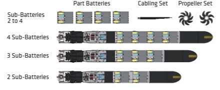 Disposición interna de las baterías en el torpedo (Atlas Elektronik)