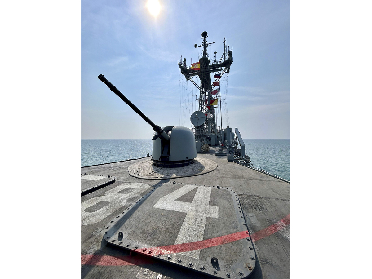 Vista de una de las fragatas F-80 en la que se aprecia el montaje artillero automático Oto Melara (ahora Leonardo) de 76,2 mm. (foto Armada)