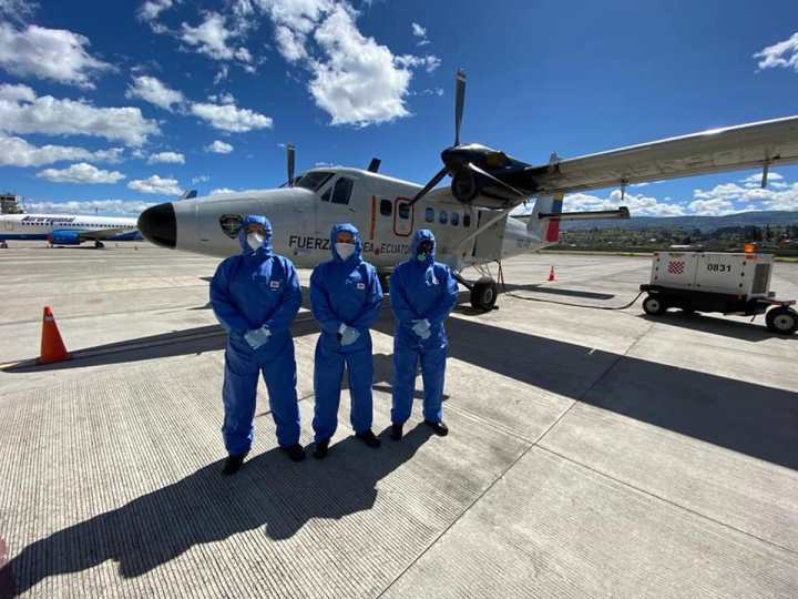 Se recurrió para ello a un avión C295M de la Fuerza Aérea del Ecuador, sumándose, el 22 de este mes, el empleo de un DCH-6 Twin Otter para transportar material logístico e insumos médicos sanitarios hacia las unidades militares acantonadas en Guayaquil, Salinas y Manta, siendo entregados al personal militar que controla la movilidad en estas ciudades a fin de evitar la propagación del Covid-19 (Carlos Vanegas)