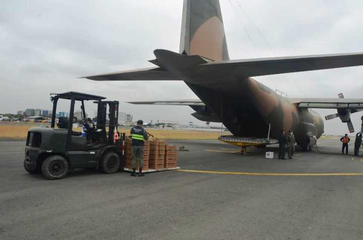 Un C-130 Hércules, perteneciente al Escuadrón de Transporte Pesado 1111 “Cóndor” de la Fuerza Aérea Ecuatoriana, desplegado en la Base Aérea Cotópaxi, llevó hasta Galápagos dos toneladas y media de víveres y productos no perecederos para la población de esta islas, a 1.000 km de la costa ecuatoriana.