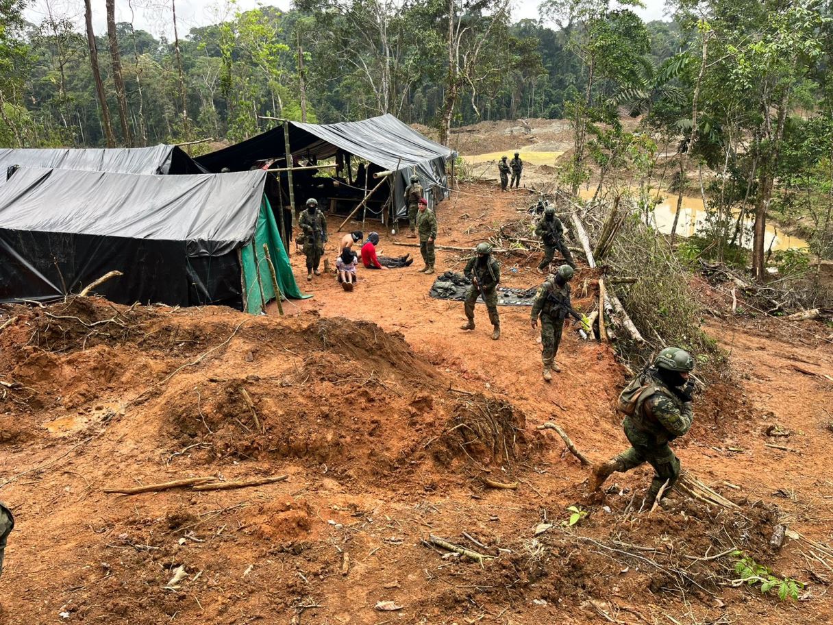Efectivos del Ejército Ecuatoriano en el Campamento de Minería Ilegal en el Cantón de Orellana.