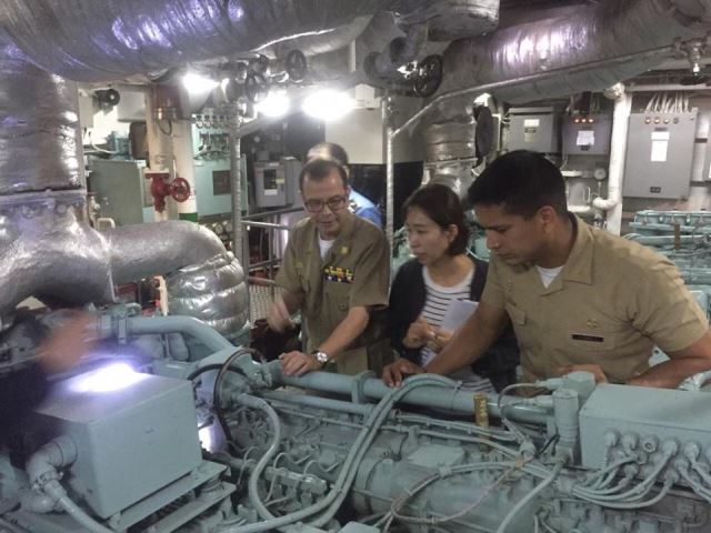 Especialistas de la Armada del Ecuador inspeccionando la sala de máquinas de una de las Patrulleras Clase “Haeuri”.