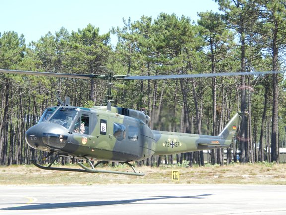 Fotografia 2: Helicóptero UH-1D Alemão pronto para iniciar mais uma missão durante o Hot Blade 2014 (Victor M.S. Barreira).