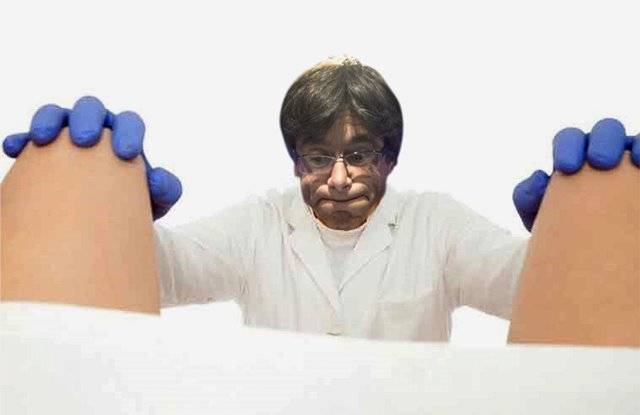 El patético, esperpéntico y puigdemónico espectáculo despertó los expectantes ingenios de su atónita audiencia y la red se inundó de ironía y sarcasmo. En esta ocasión nos llamó la atención una composición en la que se puede ver a Puigdemont buscando en aquellas partes femeninas. La imagen que reproducimos en este artículo iba acompañada de un comentario que sugería una cierta relación entre Carles y una destacada líder (también famosa por su peinado) del partido que más sinceramente le apoya. Como quiera que dicha relación no está suficientemente contrastada y el comentario no era de buen gusto nos hemos limitado a reproducir la imagen eliminando el texto. El caso es que la composición nos hizo recordar la historia del infalible ginecólogo que hace tiempo leímos en la edición digital del Diario de Sevilla (José Manuel Atencia,11 Diciembre, 2016).