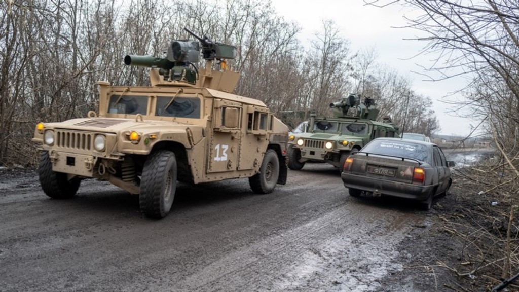 HMMWV “Humvee” con misil anticarro BGM-71 TOW y ametrallora Browning de 12,7 mm. en servicio con las Fuerzas Armadas ucranianas.