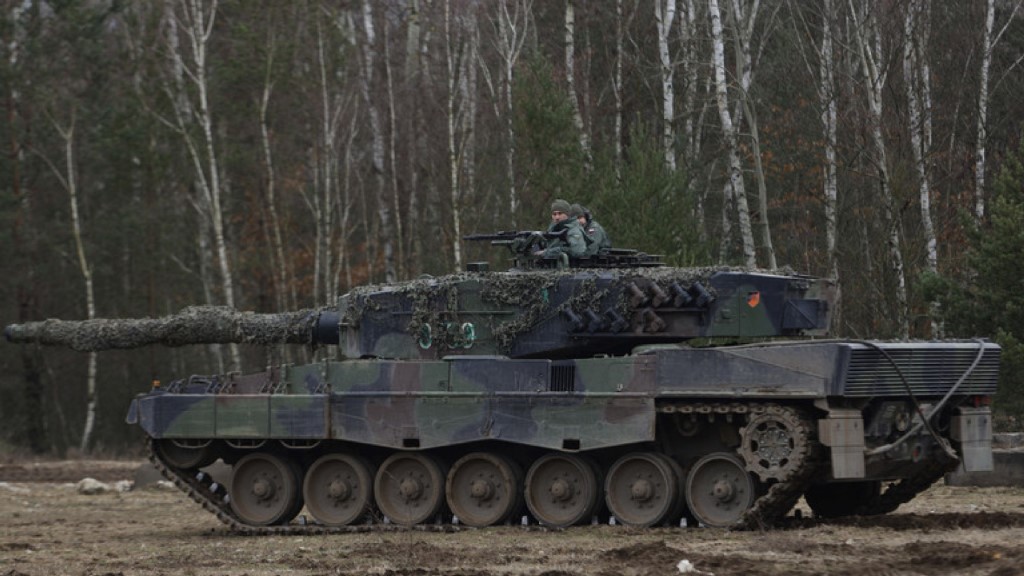 “Leopard 2” de fabricación alemana perteneciente al Ejército polaco, de los que serán transferidas a Ucrania.