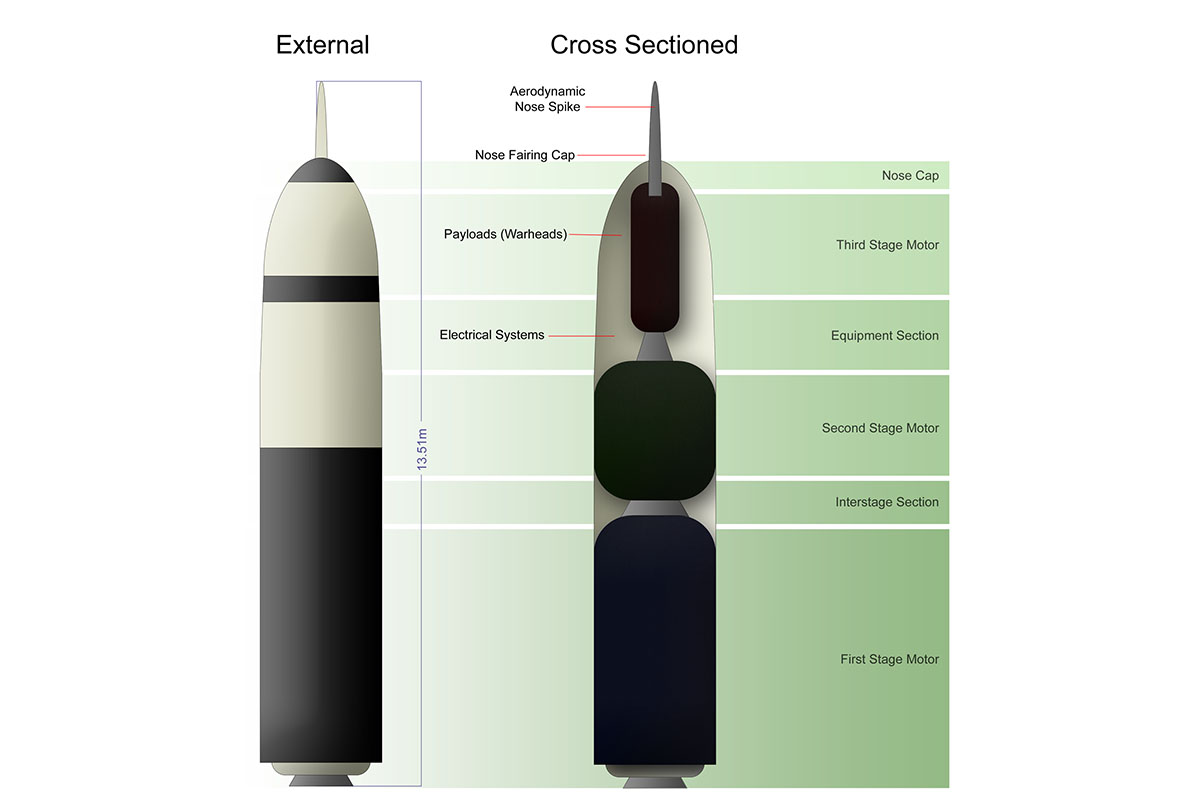 Vista esquemática de un sistema de misiles nucleares “Trident II D5”.