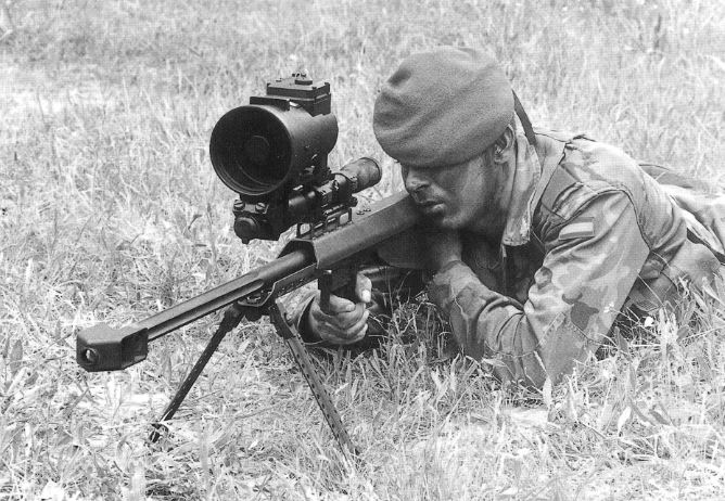 foto: Boina verde con un fusil “Barret” de 12,70 mm. Para manejarlos se seleccionan a quienes mejores resultados obtuvieron con los fusiles de 5,56 mm.