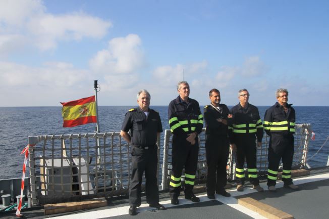 foto: Los principales responsables del programa, tanto de Navantia como de la Armada, juntos en la cubierta de vuelo del BAM.