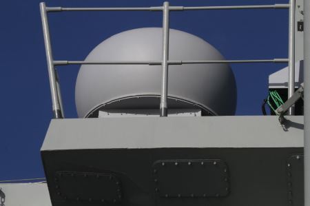 Entre las novedades del BAM Audaz respecto a los 4 entregados a principios de la década está el radar naval de exploración aérea SkyFender AMSR de Indra, que reemplaza al Aries, también suministrado por esa firma española. Lo vemos instalado en el palo mayor del navío que sobresale de su gran isla y se emplea para exploración combinada aire-superficie y control de helicópteros. Se deriva del radar de empleo terrestre AMSR y fue seleccionado por Navantia para equipar a los 2 nuevos BAM de la Armada Española.