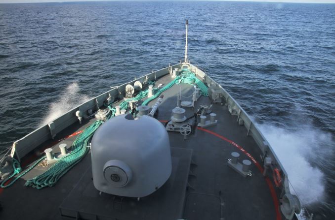 foto: El nuevo BAM durante sus pruebas de mar. En su proa va instalado su principal armamento, una pieza de Leonardo de 76,62 mm.