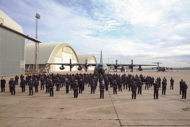 foto: Personal del Ala 31 ante un C-130 durante la despedida del sistema (foto Ejército del Aire).