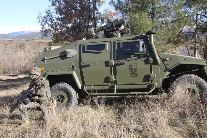 foto: El binomio VAMTAC ST5 equipado con el puesto de tiro del misil de largo alcance “Spike” es una muy buena aportación para hacer frente a unidades adversarias de todo tipo (foto Octavio Díez Cámara).