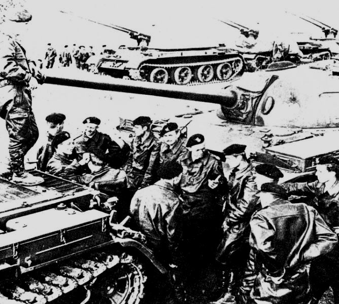 foto: El carro es, primordialmente, una plataforma móvil de armas. En la fotografía, carristas polacos junto a T-55 y ZSU-57 antiaéreos.