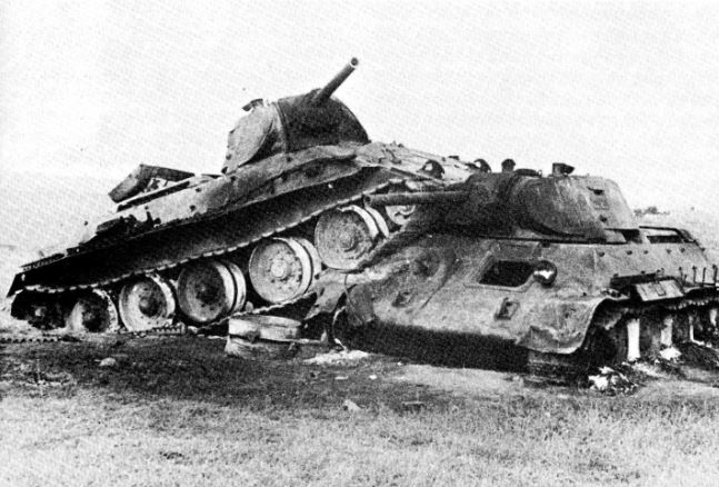 foto: Dos carros soviéticos T-34/76 destruidos durante uno de los grandes choques de blindados durante la campaña de Rusia. Al final, sin embargo, acabaron imponiéndose.