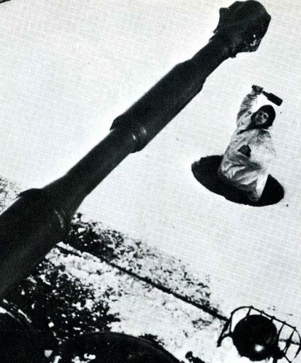 foto: Ejercicio contracarro en la Unión Soviética. En primer plano la potente perspectiva del cañón D-56T de 76,2 mm. de un carro ligero PT.76/2.