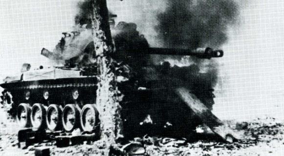 foto: El fin de un carro ligero M-41 sudvietnamita durante la batalla de Muchelin. En este caso el enemigo no fue otro carro, sino un misil.