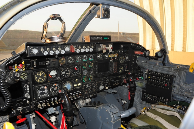 foto: “Cockpit” de uno de los A-37B del ESCOM 311. La terminal WiPAK está instalada en la parte superior derecha del tablero de instrumentos, mientras que la pantalla del GNS 530 se puede observar en medio del mismo (foto Erwan de Cherisey).