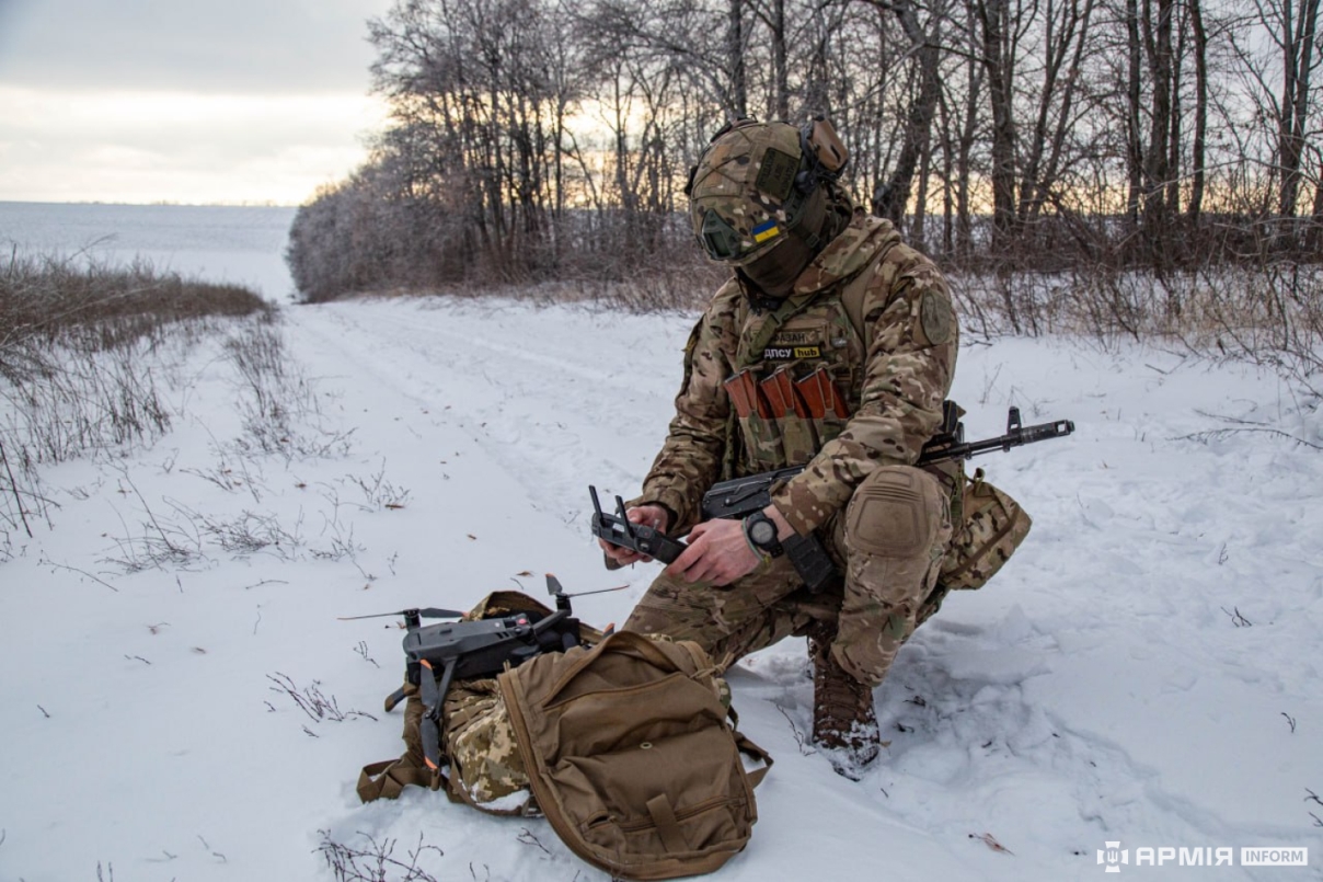 Operador de dron ucraniano con el DJI Mavic, muy usado por ambas fuerzas en tareas de observación.