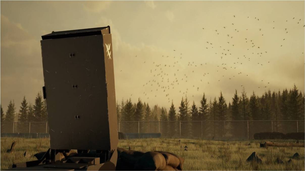 Simulación del sistema Leonidas interceptando un enjambre de drones.