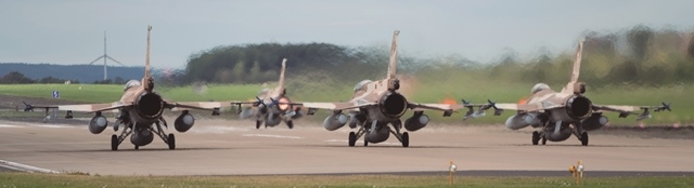 Para participar efectivamente en ambos ejercicios, la Fuerza Aérea israelí trasladó una agrupación bastante completa, que incluía destacamentos del 101º Escuadrón, conocido como The First Fighter Squadron, de la Base Aérea de Hatzor, dotado de cazabombarderos F-16C-40 Barak 2020, y del 105º, The Scorpion Squadron, con F-16D-40 Barak 2020. Las aeronaves volaron a Europa el 17 de agosto empleando el código de radio Atomi 1-6. Les apoyaron 3 Boeing cisternas (Giant 1-3) del 120º, retornando el Giant 2 a mitad de camino.