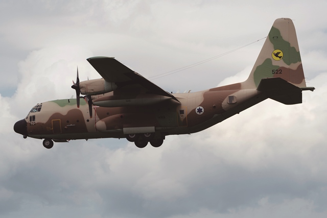 Un par de escuadrones de “Hercules” basados en Nevatim apoyaron el ejercicio. Justo antes de la llegada de los F-16 israelíes este KC-130H aterrizaba en Nörvenic y por la tarde regresó a su país.