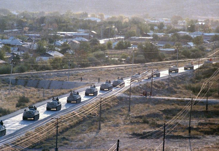 foto: Una columna de blindados rusos abandonando Afganistán (Ria Novosti)