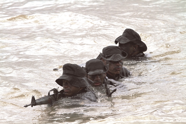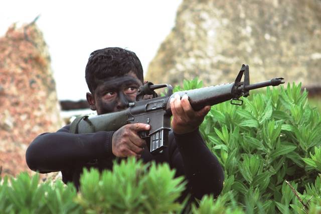 foto: Aún siguen usándose en algunas unidades, como la SECRON uruguaya, ejemplares de los más antiguos M16A1 que incorporan guardamanos triangular y cañón más delgado (foto Octavio Díez Cámara).