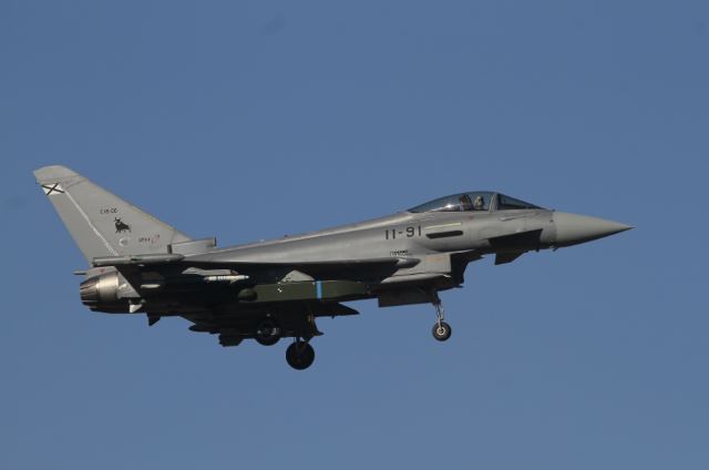 También hizo público que quedan pendientes de entregar 9, que son montados en la planta de Airbus DS sita en Getafe (Madrid), estando previsto que la puesta a disposición de éstos al Ejército del Aire se realice de aquí a 2019, quedando cerrada la línea de producción. Los últimos aparatos son de la versión denominada Trancha 3, que, junto a los ya suministrados de la Trancha 2, reúnen unas características técnicas más avanzadas, que permiten una prevista modernización, en la que ya trabaja la industria, así como el Ministerio de Defensa de España, a través de la Oficina del Programa, que depende de la Jefatura de Sistemas Aéreos de Ala Fija de la DGAM. Recordemos que los primeros Eurofighter contratados por España fueron de la Trancha 1, de los que se recibieron 18. Actualmente los emplean el Ala 11, con base en Morón (Sevilla), y el Ala 14 de Albacete, que han demostrado la eficacia y madurez operativa en misiones como las BAP (Baltic Air Pratol) en favor de la OTAN, y en múltiples ejercicios, incluido el Red Flag, que tiene lugar en Nellis (Nevada), en Estados Unidos.