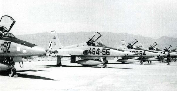 foto:En el periodo 1976-1981, aproximadamente la mitad de la flota de “Freedom Fighter” del Ala 21, pasó a formar parte del nuevo 464 Escuadrón de Gando (Foto: Ala 46).
