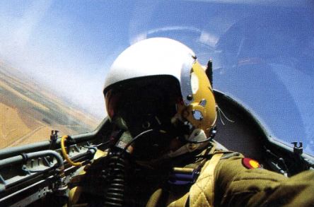 foto: El autor de este artículo, en un autorretrato, mientras volaba en la cabina trasera de un E.25 del 211 Escuadrón el 22 de junio de 1995.