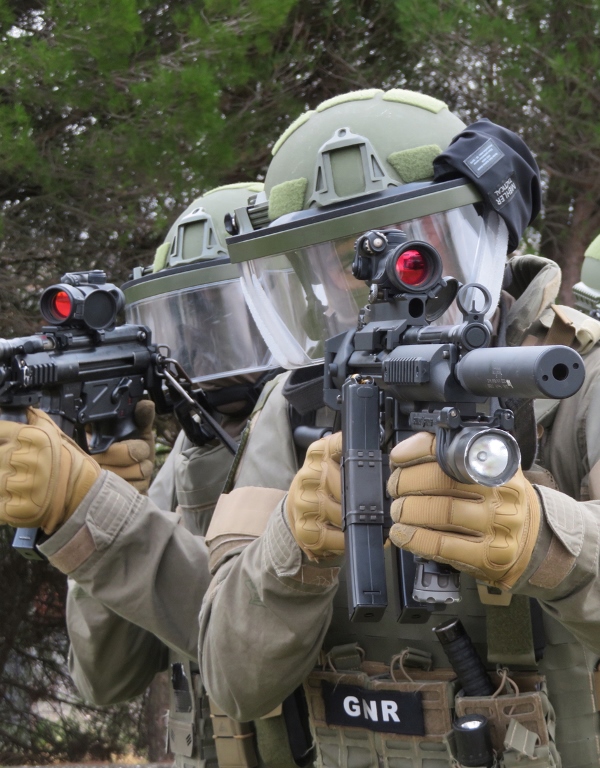 Las estructuras policiales de ámbito nacional suelen incluir un grupo de élite especialmente seleccionado, adiestrado y preparado para hacer frente a situaciones potencialmente peligrosas, en las que tengan que detener a sujetos enajenados, neutralizar a terroristas o actuar cuando hay tomas de rehenes. Esas cualidades, y alguna otra más, veremos, las tiene el Grupo de Intervención de Operaciones Especiales, GIOE (Grupo de Intervenção de Operações Especiais) de la GNR (Guardia, o Guarda, Nacional Republicana) de Portugal, una estructura policial que queda a caballo entre lo que son las fuerzas policiales y aquellas de índole más militar.